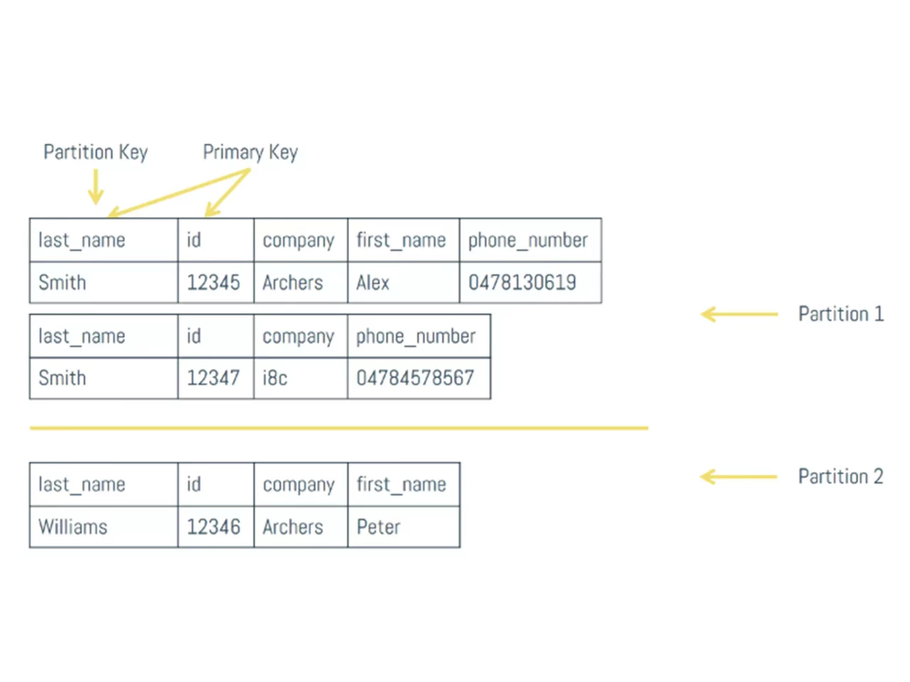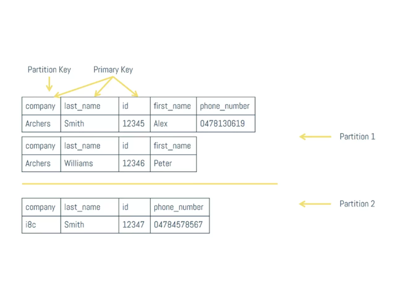 Think back at our first denormalized view, where we made company the partition key. If a consumer asks Node 1 to return all employees that work for Archers and Archers translates to a token value of 28, Node 1 knows that it needs to go looking for it in Node 2. After it gets the answer, it just passes it along to the consumer, pretending that it knew the answer all along.